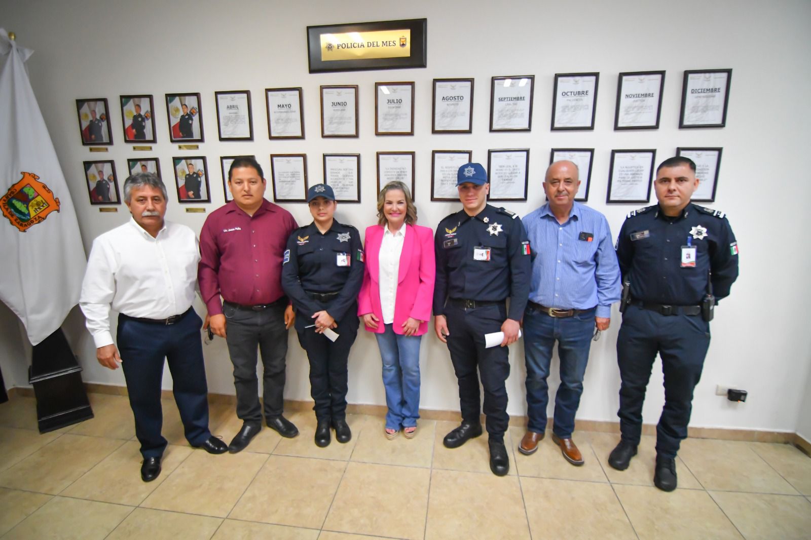La Presidenta Municipal expresó, que Alexi Itzayana García Ibarra y William Adrián Herrera Cárdenas sobresalieron por su disciplina y eficiencia del resto de sus compañeros ganándose su reconocimiento como la policía y el policía del mes, respectivamente y un estímulo de 5 mil pesos a cada uno y la distinción de colocar sus fotografías en la galería de honor.