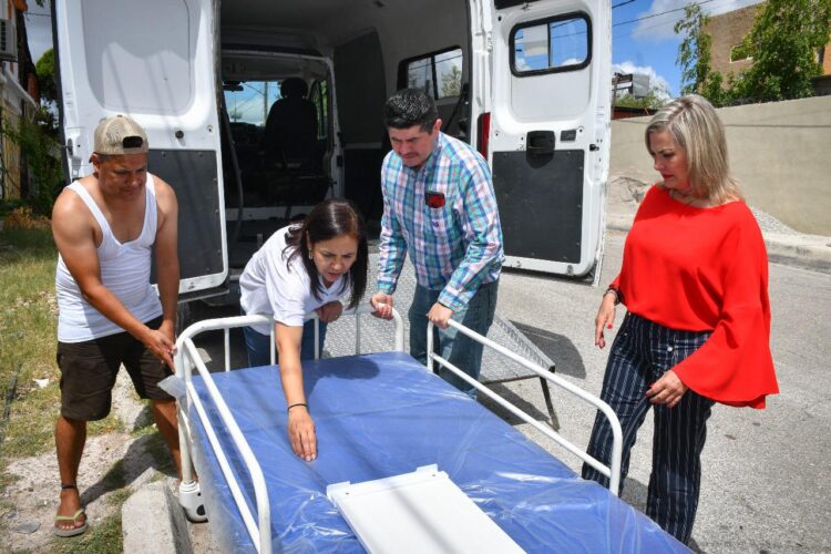 Acompañada por la directora del DIF Municipal, Alejandra Patricia González Franco, Norma Treviño, entregó tres camas de hospital a domicilio a las personas que las necesitan; con el objetivo de hacer posible la movilidad y comodidad para mejorar la calidad del cuidado de pacientes que se encuentran en cama por algún problema de salud.