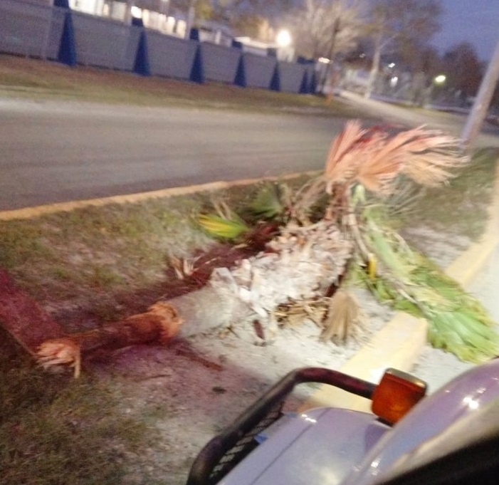 Con revisión al pino navideño instalado en la macroplaza, y atención a dos reportes de semáforo (uno derribado y otro por tuercas flojas), de palmeras derribadas en el sector industrial y láminas debilitadas en anuncio de la Unidad de Medicina Familiar 92 del IMSS.