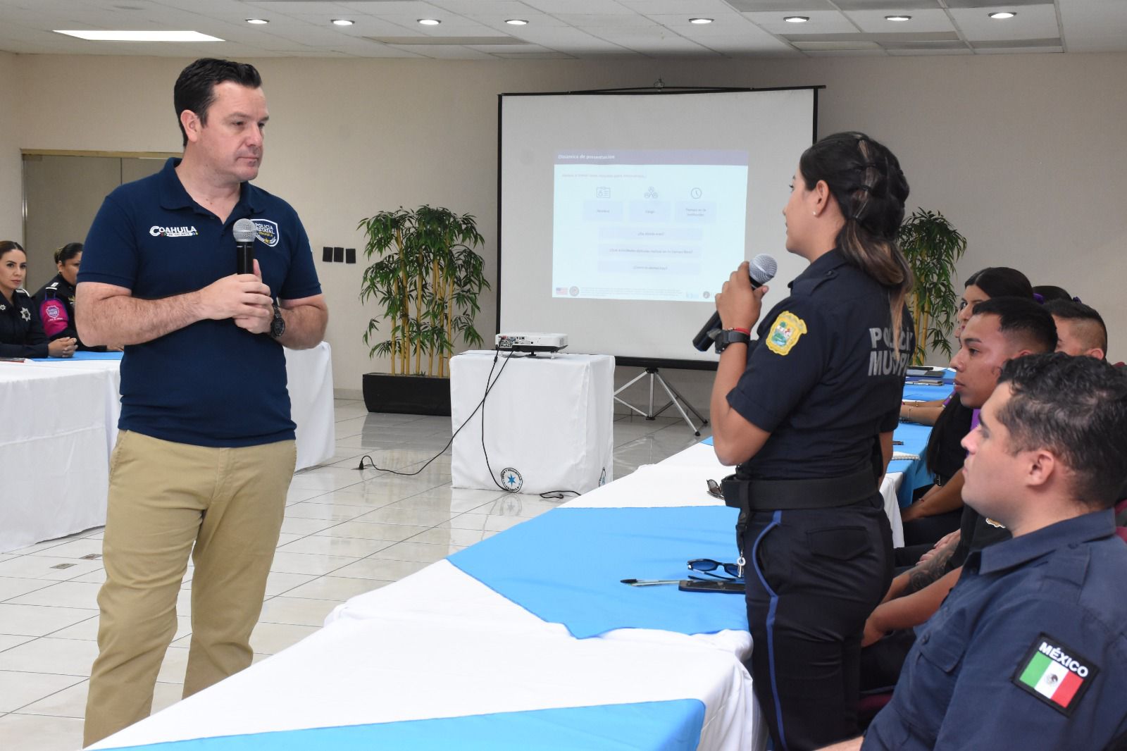 Saltillo, Coahuila de Zaragoza. 11 de junio de 2024.- La Secretaría de Seguridad Pública a través de su área de Proximidad Social y Prevención capacitó a elementos municipales de las corporaciones de Arteaga, Parras de la Fuente, Piedras Negras, Saltillo y San Pedro de las Colonias.