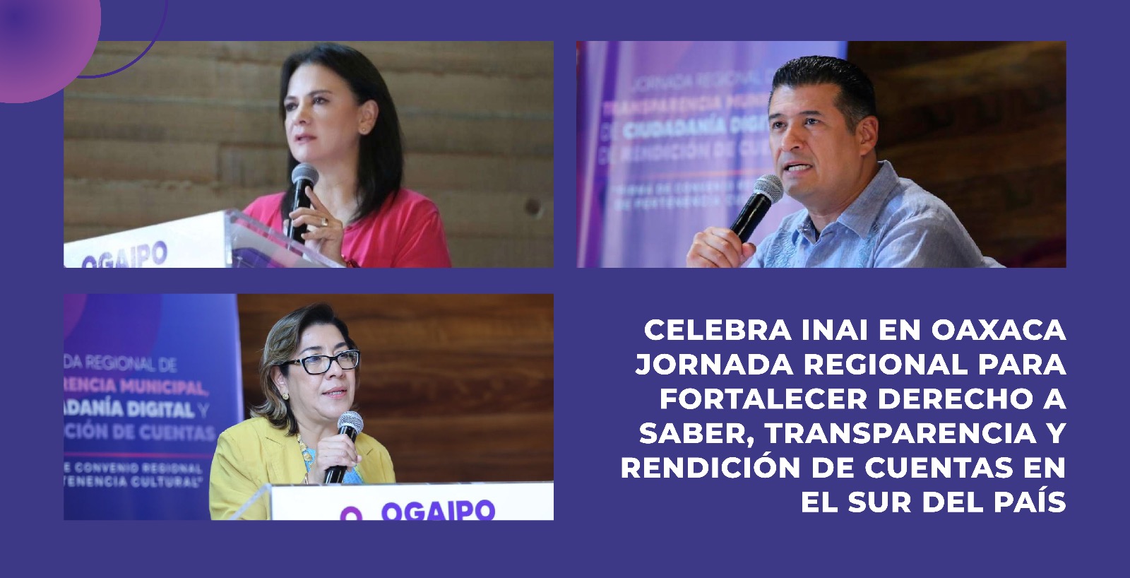 Con el objetivo fortalecer el ejercicio del derecho a saber, la transparencia y la rendición de cuentas, el Instituto Nacional de Transparencia, Acceso a la Información y Protección de Datos Personales (INAI), en coordinación con la Región Sureste del Sistema Nacional de Transparencia (SNT), llevó a cabo en el estado de Oaxaca la Jornada Regional de Transparencia Municipal, de Ciudadanía Digital y de Rendición de Cuentas.