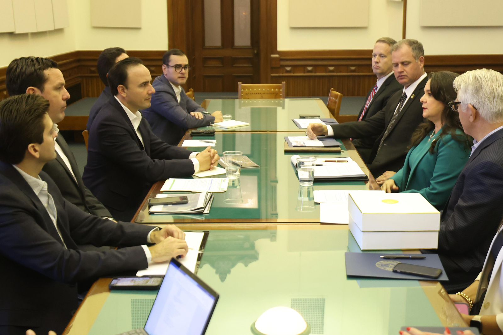 El Mandatario coahuilense se reunió con funcionarios de Texas titulares en áreas de seguridad, economía y turismo, con quienes dio seguimiento a acciones y proyectos que se acordaron en su pasada reunión con el gobernador Greg Abbott.