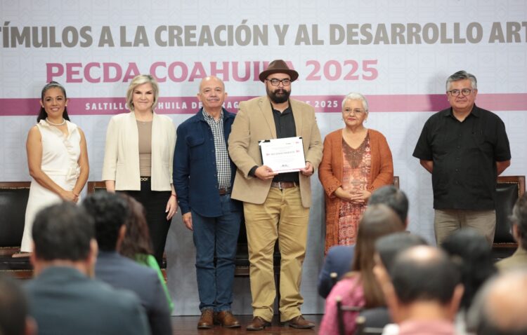 Saltillo, Coahuila; 19 de agosto de 2025.– El Gobierno del Estado de Coahuila de Zaragoza, a través de la Secretaría de Cultura, en colaboración con la Secretaría de Cultura del Gobierno de México y el Sistema de Apoyos a la Creación y Proyectos Culturales (SACPC), realizó la entrega de los estímulos del Programa de Estímulo a la Creación y Desarrollo Artístico (PECDA) Coahuila 2025, con el propósito de fortalecer e impulsar el trabajo de las y los creadores coahuilenses.