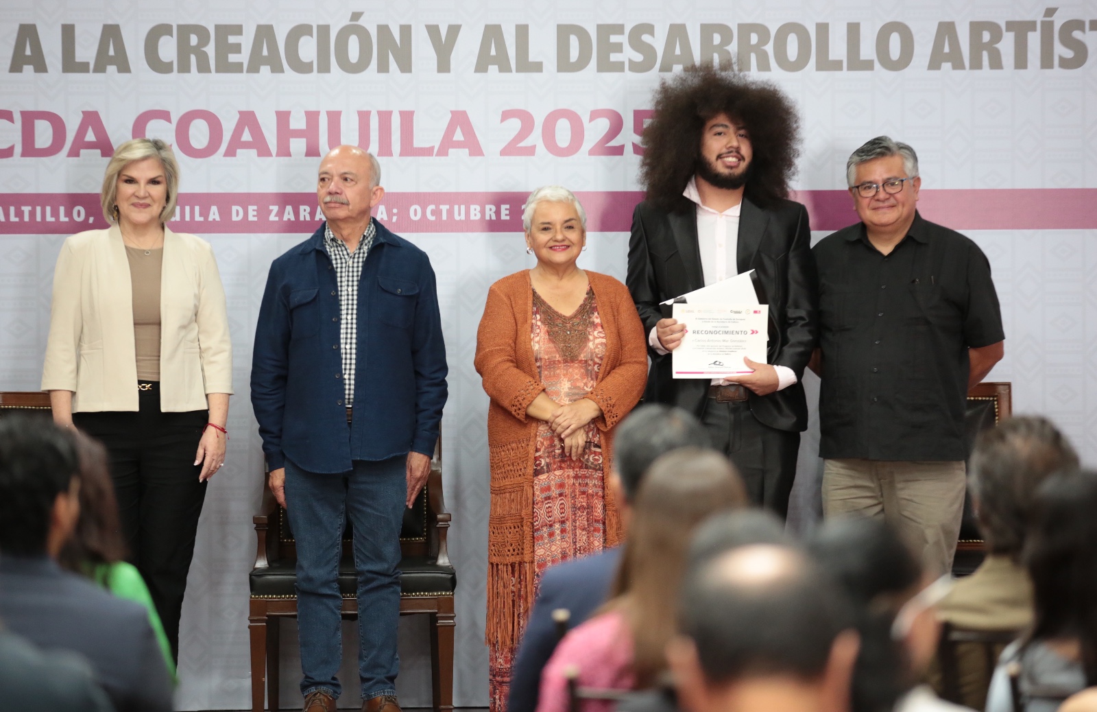 Asimismo afirmó: “ Hoy celebramos no solo los logros de quienes reciben este estímulo, sino también la vocación de todos los creadores que, día a día, trabajan para transformar ideas en experiencias, emociones y conocimiento. Su labor es ejemplo de perseverancia, disciplina y compromiso, y demuestra que la creatividad no tiene límites cuando se combina con talento y dedicación. Al felicitar a los ganadores, los exhorto a continuar explorando y desarrollando su obra con confianza y convicción. Que este estímulo sea un impulso, que cada proyecto se convierta en un referente y que Coahuila siga siendo un espacio donde el arte y la cultura encuentren siempre respaldo, reconocimiento y oportunidades de crecimiento.”