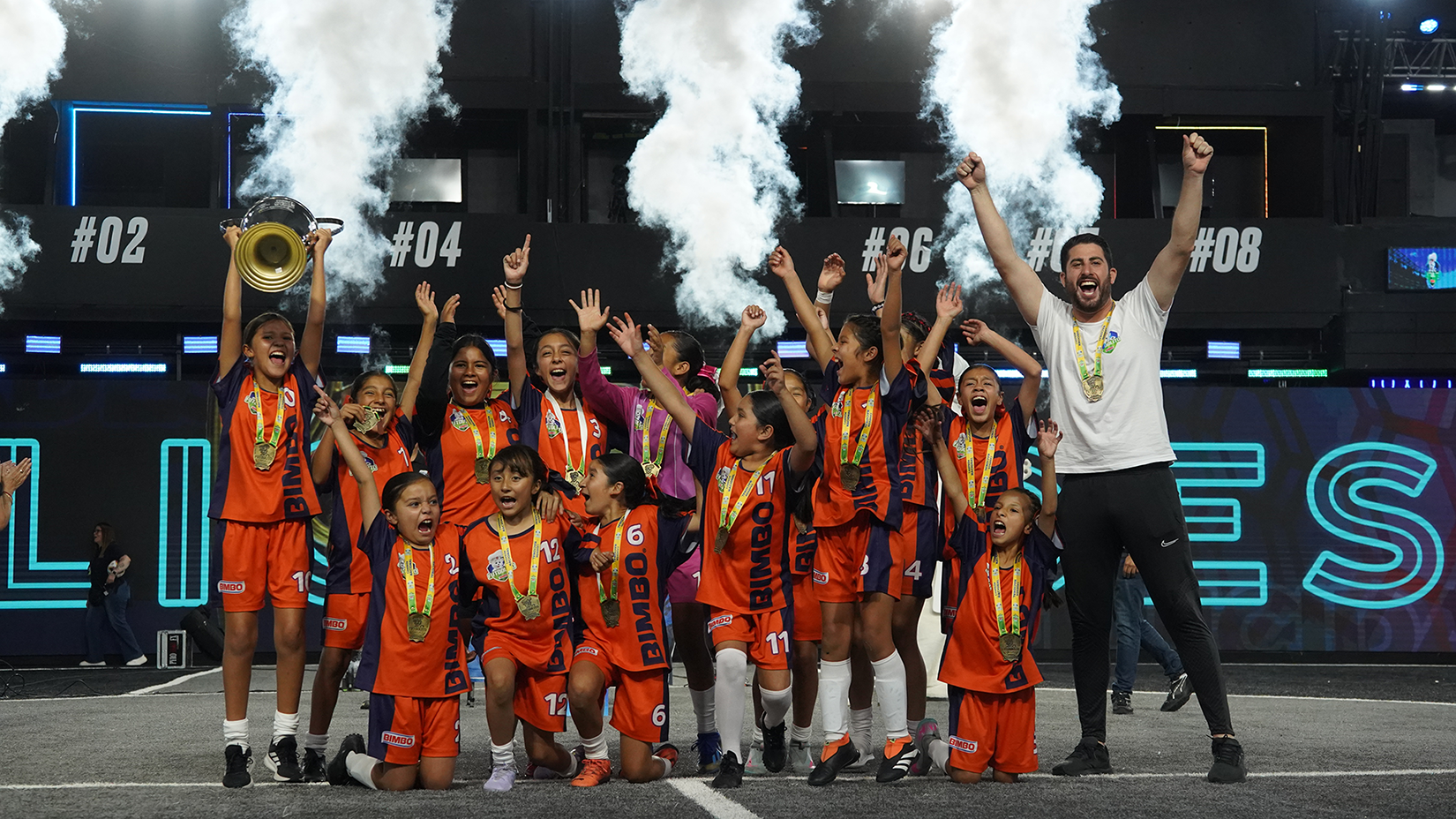 Ciudad de México, 14 de julio de 2025. Con el domo de la Kings League como escenario y la asistencia de padres de familia, autoridades, niñas y niños, se disputaron las grandes finales de la 61ª edición de Futbolito Bimbo. En la rama femenil se enfrentaron los equipos de las escuelas Anexa La Normal del estado de Durango y Colegio El Arca de Baja California; en la rama varonil jugaron el Colegio Valladolid Cancún de Quintana Roo y Playas Elementary School de Baja California.