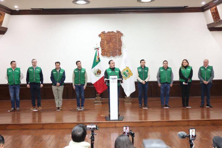 Acompañado por Blas Flores González, jefe de Gabinete y Proyectos Estratégicos; Gabriel Elizondo Pérez, coordinador general de Mejora Coahuila; así como por titulares de diversas dependencias de la administración estatal, Manolo Jiménez