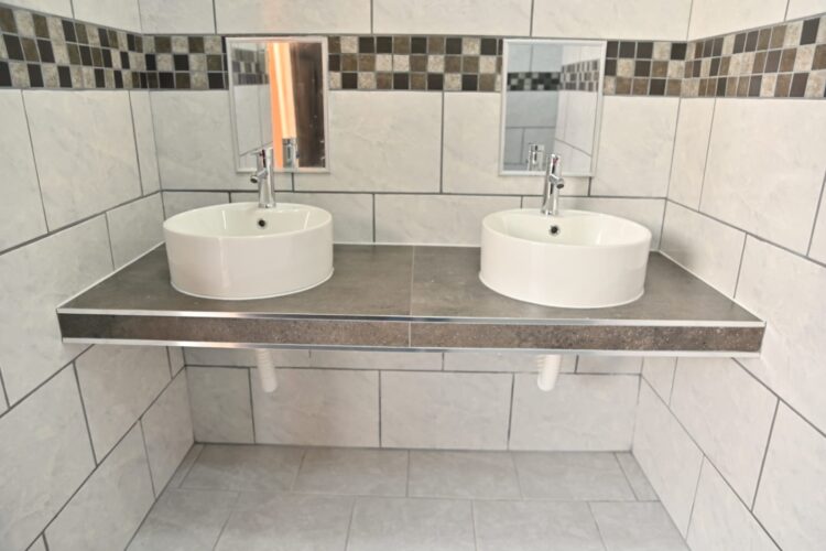 Acuña, Coah., 07 de febrero 2024.-Ante alumnos, director y maestros de la Primaria Vicente Guerrero del ejido Las Cuevas, el alcalde Emilio de Hoyos Montemayor y la directora de Desarrollo Social Tania Pérez Rivera encabezaron la entrega de obra de rehabilitación de módulos sanitarios.