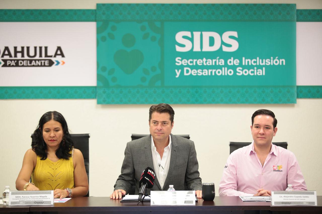 Saltillo, Coahuila de Zaragoza 04 de septiembre de 2025.- La Secretaría de Inclusión y Desarrollo Social (SIDS), encabezada por el secretario Enrique Martínez y Morales, junto al director del DIF Coahuila, Alejandro Cepeda, y la titular Patricia Yeverino, de la Dirección para Promover la Igualdad y Prevenir la Discriminación, anunciaron en rueda de prensa la convocatoria del concurso estatal “Yo por la Inclusión”.