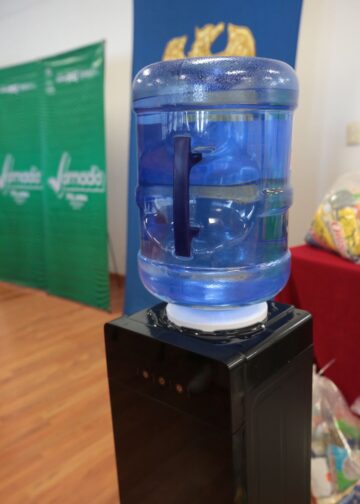 En primera instancia, en la Facultad de Sistemas, acompañado de su Director, Evaristo Alférez Rodríguez, entregó paquetes alimentarios en beneficio directo de sus 100 estudiantes foráneos, así como dos despachadores de agua para el plantel.