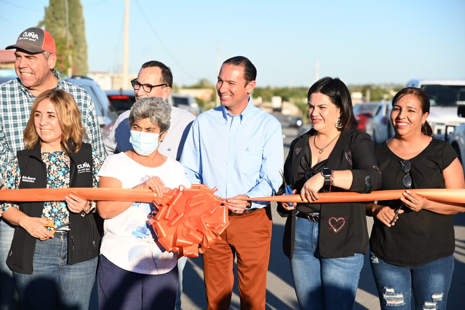 Acuña, Coah., 13 de oct. 2023.-Con alegría habitantes de las colonias 5 de Mayo y Villa Milenio después de 23 años, recibieron obra de pavimentación de 13 cuadras en la calle Nopal, que constituye la más grande obra e inversión a través del fondo de infraestructura social municipal.