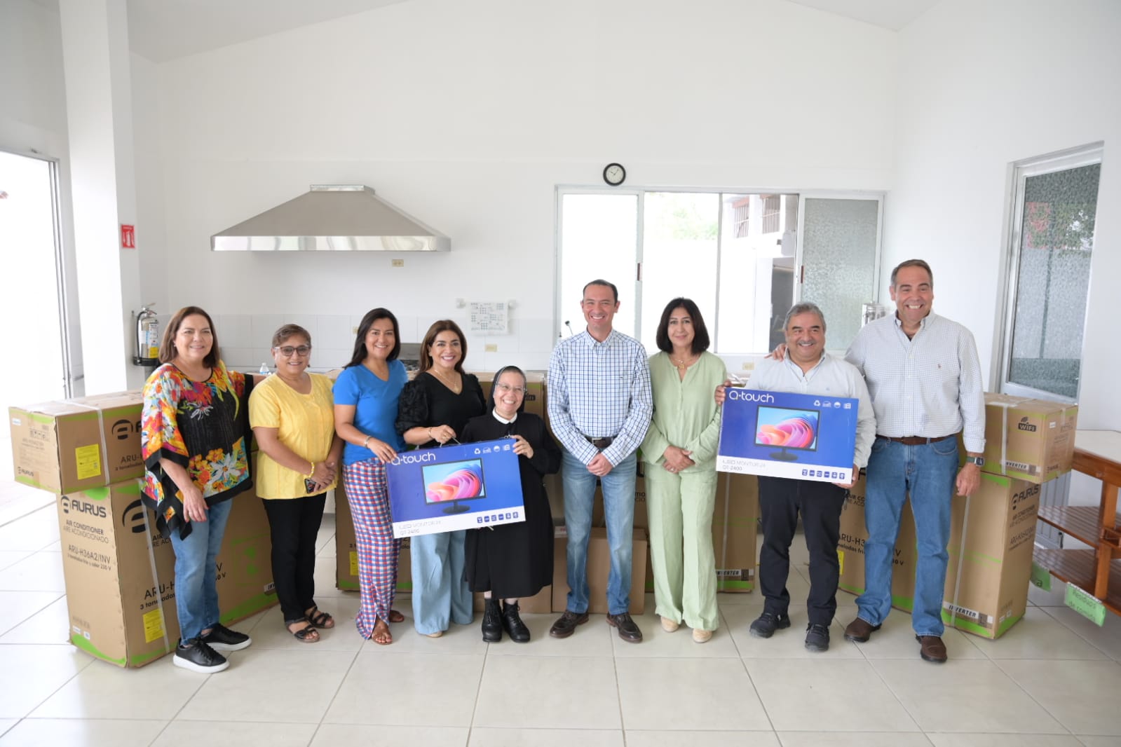 En compañía de la directora del Sistema DIF Amalia Guadalupe Hernández Tijerina y del secretario técnico Héctor Eduardo Arocha Gómez, hizo entrega del equipo a Adriana Gutiérrez Salinas y miembros del patronato, así como a personas consagradas a esta obra social.