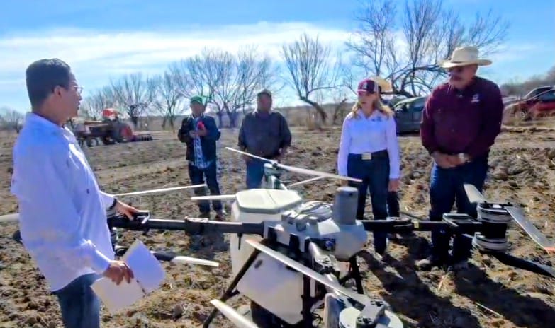 La actividad fue encabezada por Arnoldo Guajardo Salinas, director de Desarrollo Agropecuario del municipio, junto a un grupo de ingenieros provenientes de la región Laguna. Los especialistas mostraron cómo esta tecnología puede reducir costos y optimizar el trabajo en las parcelas.