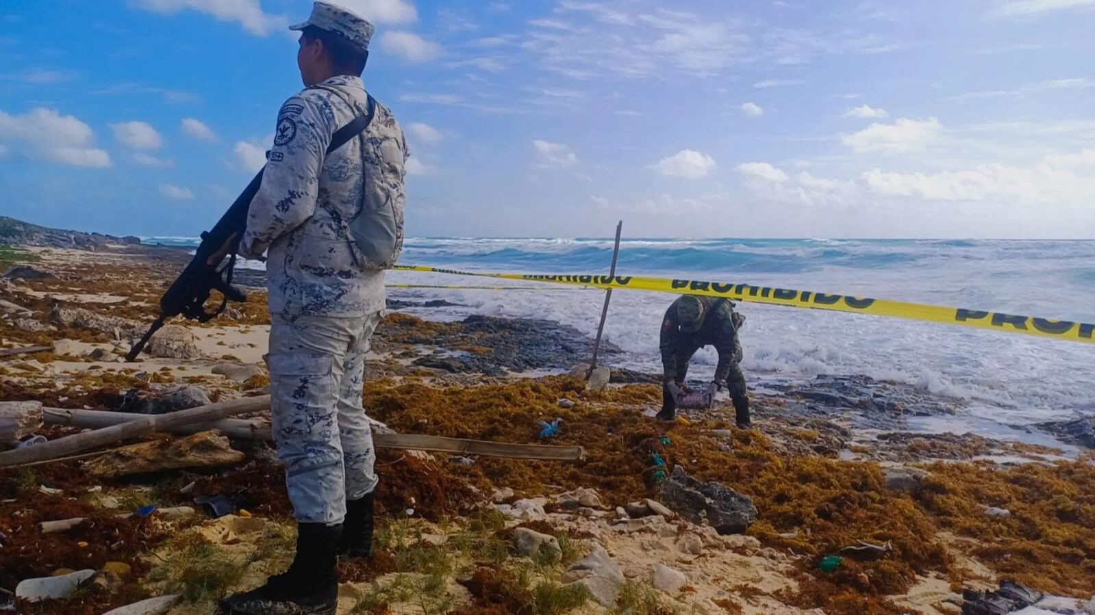 Los hechos ocurrieron en la zona costera del municipio de Cozumel, Q. Roo, cuando el personal militar al realizar reconocimientos terrestres a la orilla de la playa, localizó por hallazgo 22 paquetes en cuyo interior contenían 22 kilogramos aproximadamente de una masa blanca, compacta y húmeda, con características similares a la cocaína, los cuales fueron puestos a disposición de las autoridades correspondientes, con el objeto de que se realicen las investigaciones y acciones periciales que confirmen el tipo y cantidad de droga.