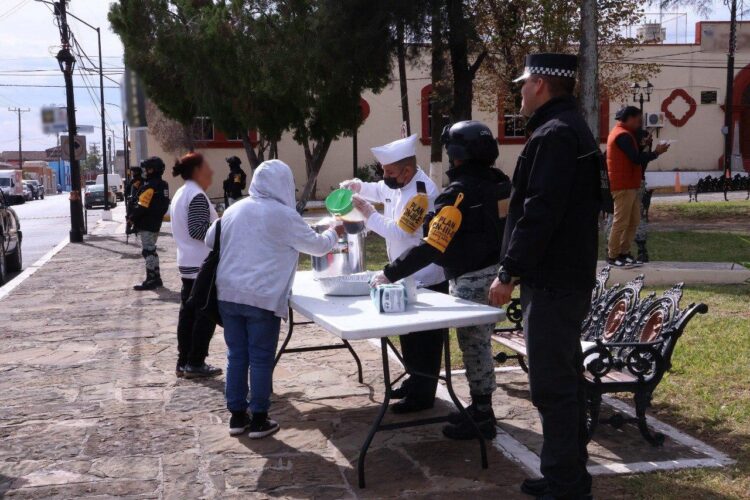 El personal de esta fuerza de seguridad pública en coordinación con autoridades locales, estableció módulos de distribución de bebidas calientes, en los municipios de Nuevo Laredo y Mier.