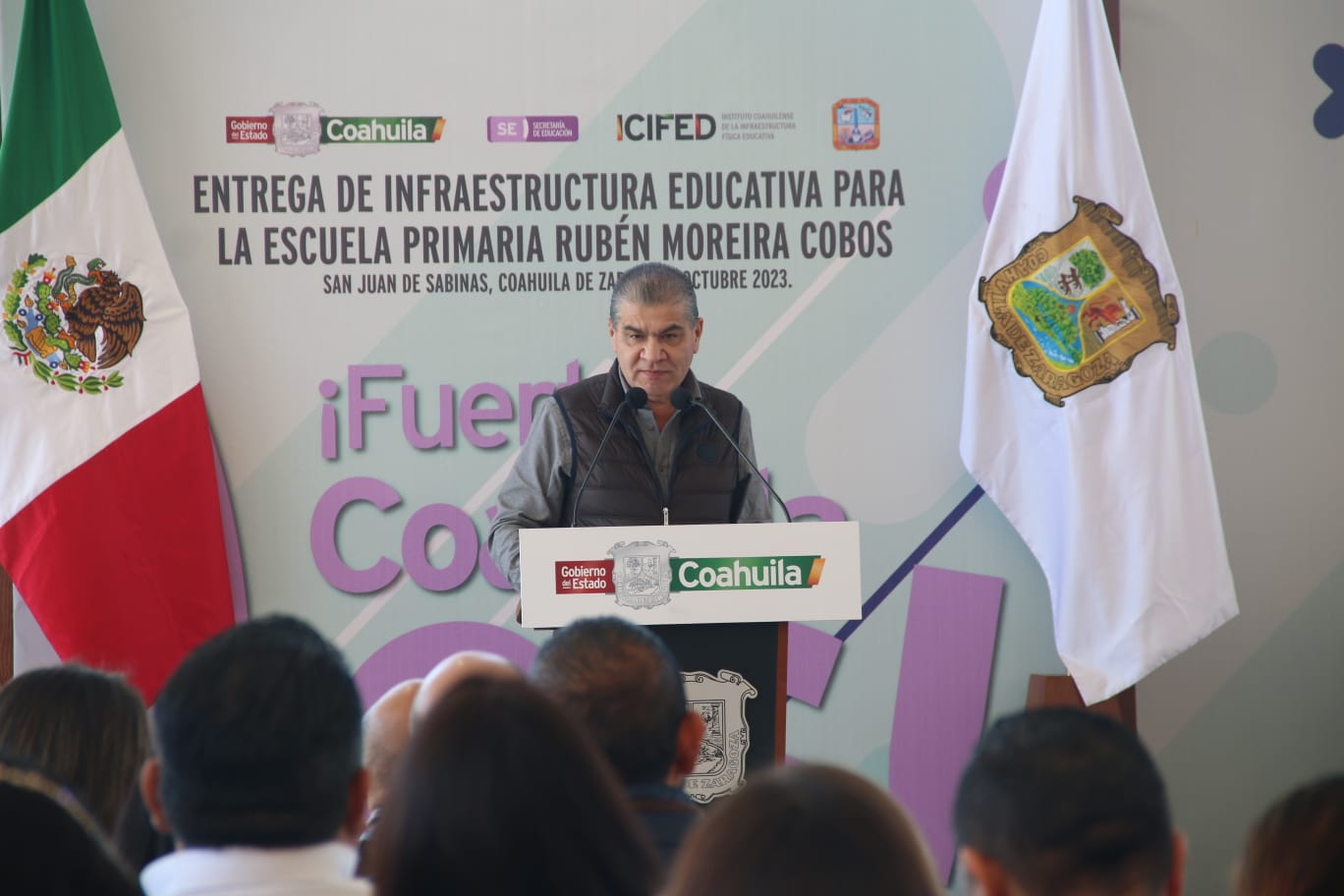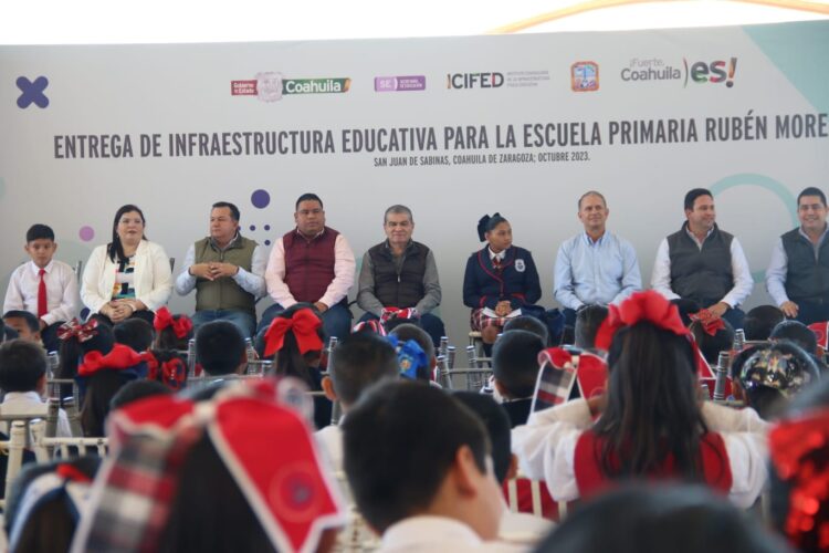 Sabinas, Coahuila de Zaragoza; a 18 de Octubre del 2023.- Acompañado por los alcaldes de San Juan de Sabinas y Sabinas, el gobernador Miguel Ángel Riquelme Solís hizo entrega de obras por más de 18 millones de pesos en infraestructura vial y educativa, así como de agua y drenaje, para los ciudadanos de estas localidades.