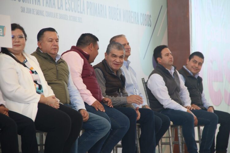 Expuso que la trasformación de Coahuila es gracias al trabajo de todos, como en este plantel, con el techado ya tienen mejores espacios para una estancia de sus actividades deportivas.
