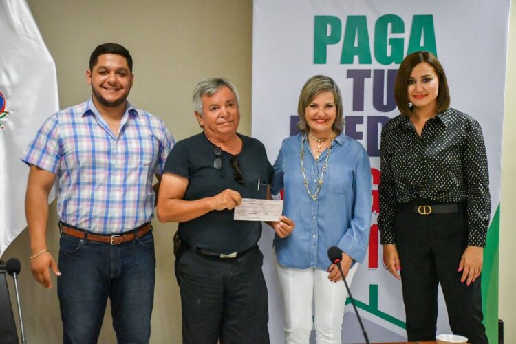 Dando seguimiento al programa «Pagas y al 100» la Presidenta Municipal Norma Treviño Galindo realizó la entrega de 47 cheques a beneficiarios del seguro contra desastres naturales, el cual obtuvieron tras pagar oportunamente su Impuesto Predial a principios de este año.