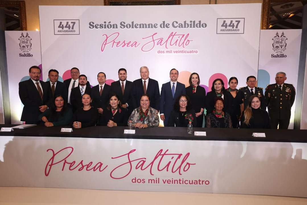 «Celebramos la gloria, la grandeza de las mujeres y hombres fuertes, trabajadores y echados pa’delante de la capital de nuestro estado. Hicimos entrega de la Presea Saltillo con la que se reconoce a quienes han contribuido de manera significativa al engrandecimiento de esta tierra bendita. ¡Felicidades a todos los saltillenses!», señaló.
