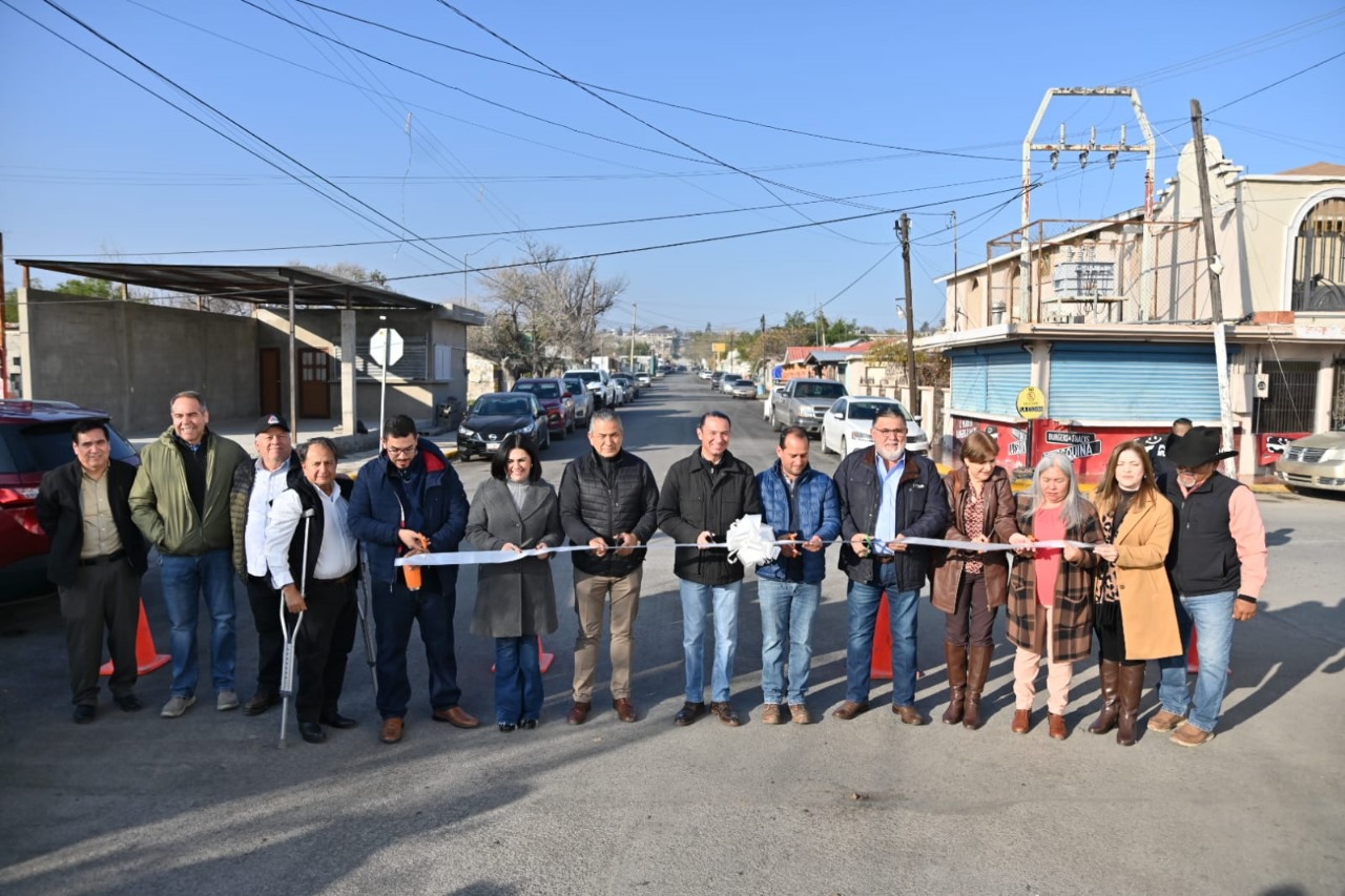 Acuña, Coahuila; 03 de enero 2024.- Junto a su equipo de trabajo, regidores y del director de Obras Públicas Municipales Carlos Humberto Flores Jiménez, el alcalde Emilio de Hoyos Montemayor entregó obra de pavimentación de la calle 2 de abril, con una inversión de 1.3 millones de pesos.