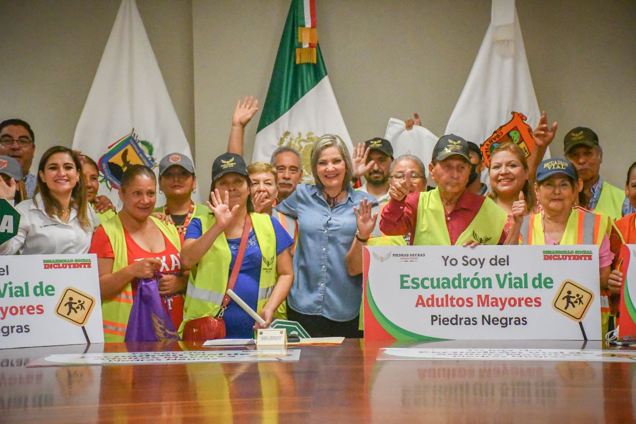 Piedras Negras, Coah. Adultos mayores y padres de familia que prestan su servicio como “Escuadrón Vial” en las escuelas de la ciudad recibieron apoyo de la Alcaldesa Norma Treviño Galindo quien reconoció su valioso trabajo.
