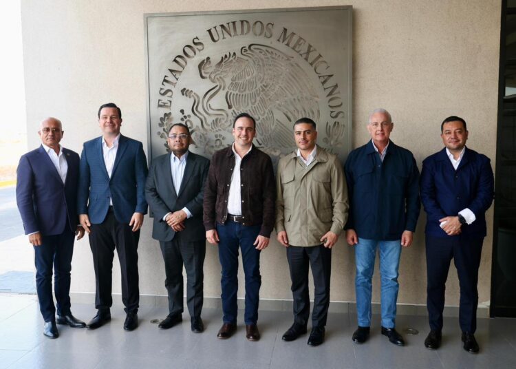 Torreón, Coahuila; 07 de enero de 2026.- El secretario de Seguridad y Protección Ciudadana, Omar García Harfuch, el gobernador de Coahuila, Manolo Jiménez Salinas y sus equipos de trabajo, sostuvieron una reunión privada con empresarios de la Laguna con el objetivo de reforzar los operativos de seguridad en la región, con énfasis en el combate a la extorsión.