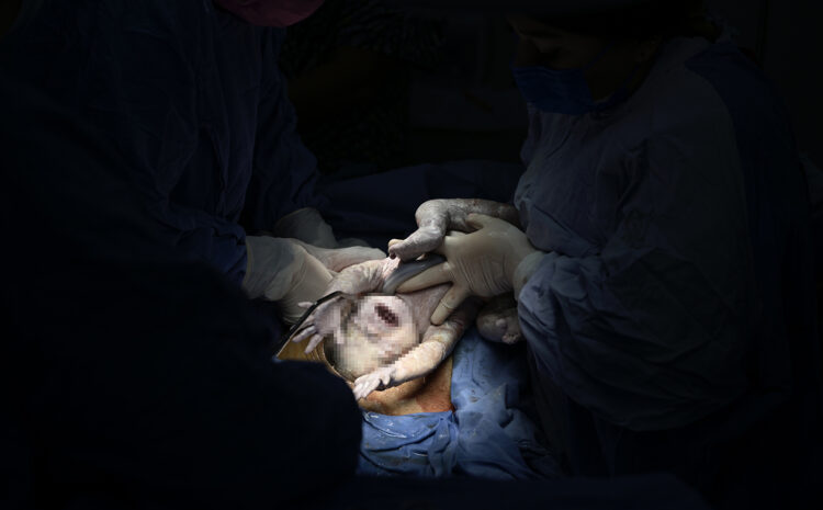 El nacimiento tuvo que realizarse por vía cesárea para asegurar la salud y bienestar del binomio, ya que se detectó que el bebé se encontraba en presentación pélvica (sentado), por lo que estaba iniciando el trabajo de parto.