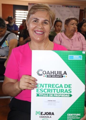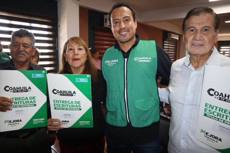 Estas escrituras se entregan como parte del programa Mejora Coahuila, a través del cual se acercan trámites, asesorías y apoyos a colonias, barrios y ejidos, con el objetivo de fortalecer la calidad de vida de las y los coahuilenses.