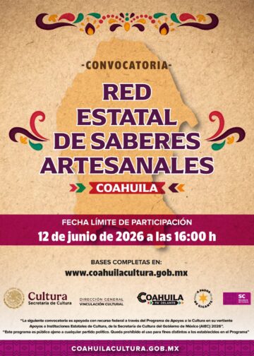 Asimismo, la convocatoria “Red Estatal de Saberes Artesanales” tiene como objetivo preservar y transmitir los conocimientos, oficios y técnicas tradicionales que forman parte del patrimonio cultural vivo de Coahuila, a través de talleres de iniciación artesanal impartidos por maestras y maestros artesanos en distintas disciplinas y expresiones propias de la identidad regional.