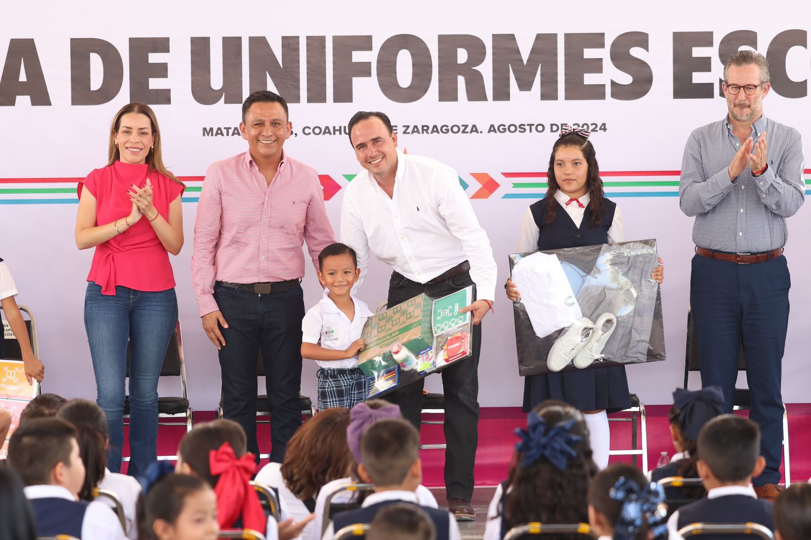 «Como parte del arranque del nuevo ciclo escolar, en el ejido Maravillas de Matamoros detonamos la entrega de uniformes y tenis para nuestras niñas, niños y adolescentes de las mil 429 escuelas rurales de Coahuila, donde tendremos la oportunidad de beneficiar a casi 100 mil  alumnos. Esto se suma al programa de medio millón de paquetes de útiles escolares gratuitos y otros programas sociales para nuestra gente. Reiteramos nuestro compromiso con la economía de las familias y con la educación de las nuevas generaciones de coahuilenses», destacó.