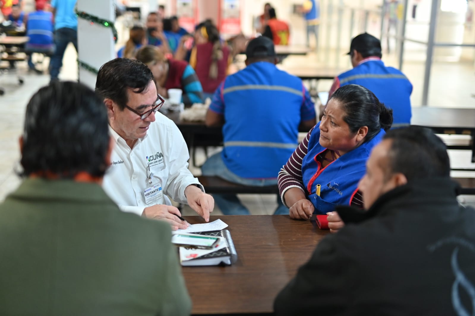 En la cafetería de la empresa, en un horario de 8 de la mañana a 1 de la tarde atendieron a los trabajadores con trámites e información valiosa para ellos.