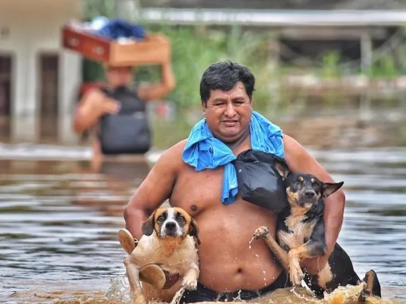Grupos de jóvenes bolivianos en la ciudad de Cobija, en el departamento amazónico de Pando, se esfuerzan para rescatar a las mascotas y a los animales callejeros que fueron olvidados en medio de una de las peores inundaciones en la historia de esa región, que elevó el nivel del agua a los 17 metros.