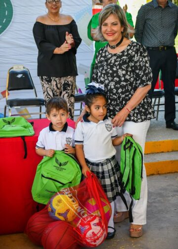 «Estamos en este kinder para entregar mochilas, material deportivo y dos aparatos de aire acondicionado que tienen un valor de 27 mil pesos, que fueron aportados por la sociedad de padres y el municipio. Además, acercamos a esta escuela el consultorio dental móvil, la trailita ‘TacoNTodo’ con un rico desayuno y la Brigada Todos a la Escuela, con actividades preparadas por los funcionarios del municipio», afirmó.