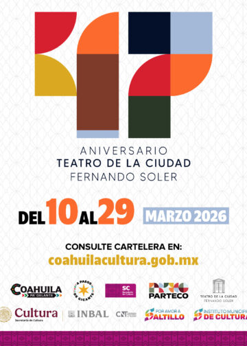 Saltillo, Coahuila a 2 de marzo de 2026.- La Secretaría de Cultura de Coahuila presenta la Cartelera Cultural de Marzo, un mes especialmente significativo que rinde homenaje a uno de los recintos más emblemáticos de Saltillo: el Teatro de la Ciudad Fernando Soler, que celebra un aniversario más como referente de las artes escénicas y como espacio fundamental para la vida cultural de las y los coahuilenses.
