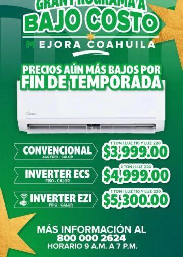 Precisó que el mini split inverter de una tonelada en 220 volts tiene un costo de 5 mil 300 pesos, considerado como precio especial de invierno, lo que representa un ahorro significativo para los hogares que buscan prepararse con anticipación para la temporada de calor.