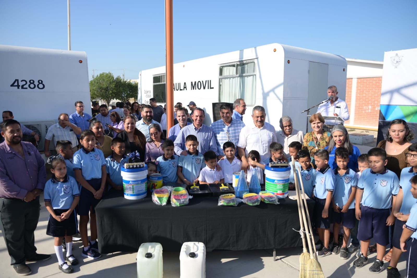 ACUÑA, COAH. – Conforme a las necesidades de la escuela primaria Humberto Jiménez Garza, fue reactivada la brigada «Contigo en la Escuela», con la participación de 10 dependencias municipales con servicios y programas, y con la entrega de material de limpieza, deportivo y pintura para barda perimetral.