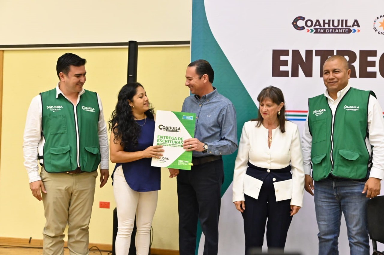 Ante beneficiarios, notarios públicos, personal de sindicatura, del programa Mejora y de la CERTURC Comisión Estatal de Regularización de la Tenencia de la Tierra Urbana y Rústica de Coahuila, se realizó jornada de entrega de escrituras.