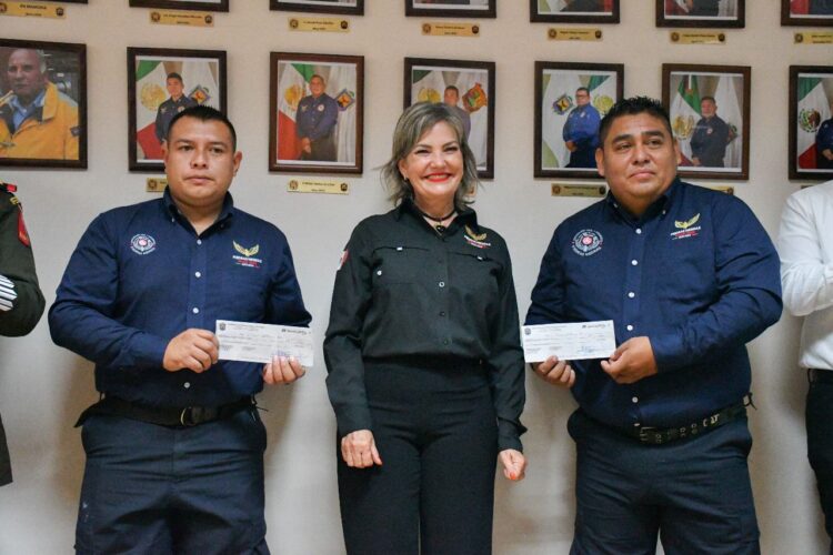 Luego de entregar estímulos económicos de 5 mil pesos a los maquinistas Adán Vences Luna e Ismael Benítez Medina, en reconocimiento a su desempeño como «Bomberos del Mes» del pasado septiembre, la Alcaldesa enalteció el trabjo del personal adscrito a esta heroica institución, al que calificó como un cuerpo tenaz, ejemplo para los ciudadanos de compromiso y gran humanidad para salvar vidas.