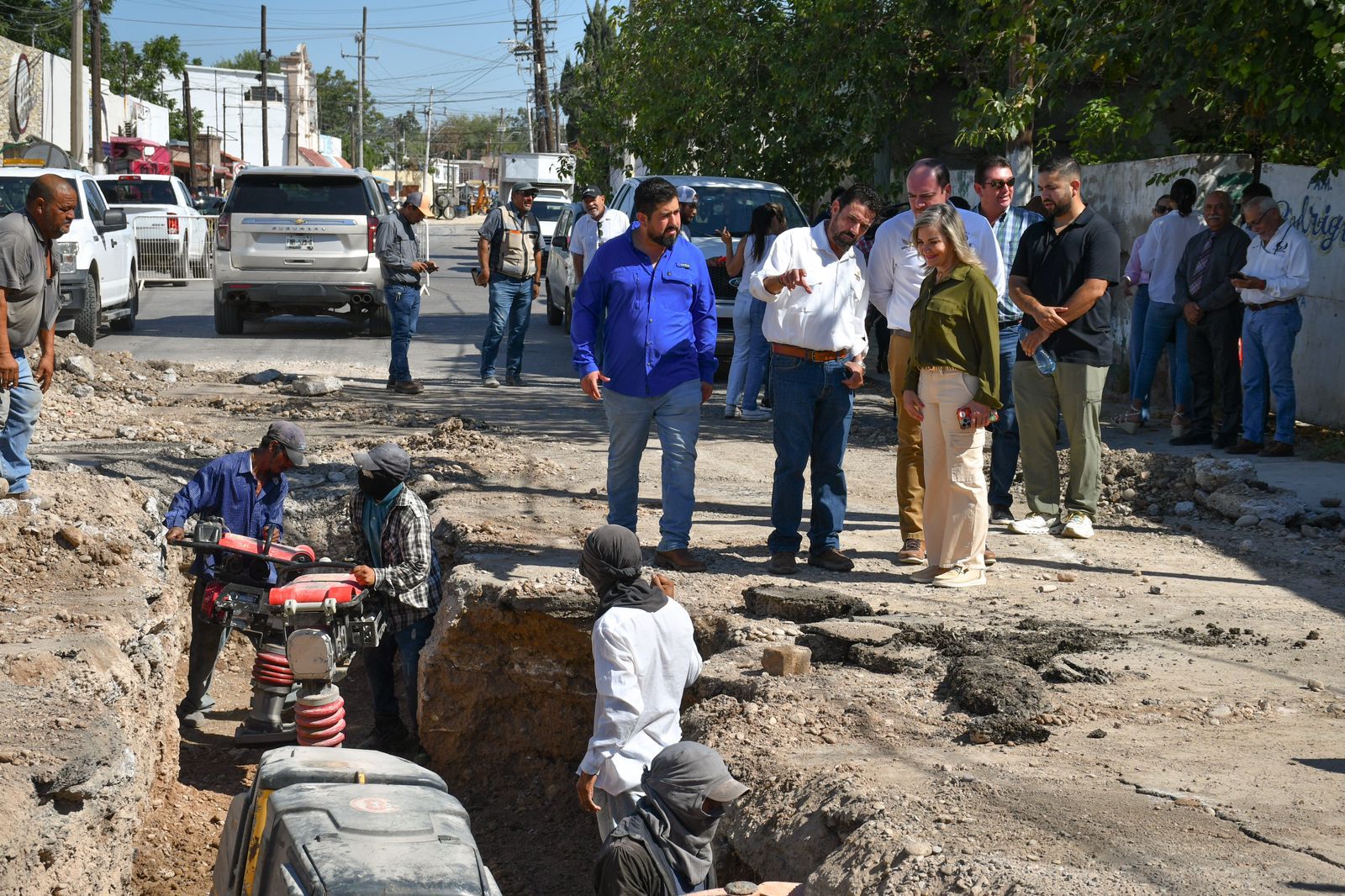 Acompañada por el Gerente General de SIMAS Juan Olvera Velázquez, regidores y funcionarios, la Primera Autoridad Municipal constató, en el cruce con la calle Jalisco, el relleno y compactación de las zanjas, una vez concluida la renovación de drenaje en un tramo de 460 metros lineales, de un total de 560, que incluyó la reparación de 69 descargas domiciliarias y/o domésticas.