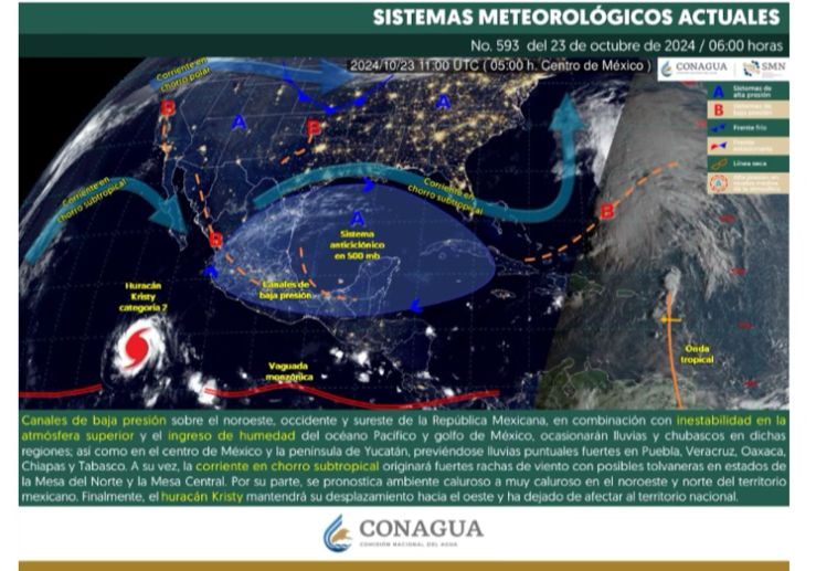 Saltillo, Coahuila de Zaragoza; 16 de octubre de 2024 – La Subsecretaría de Protección Civil del Estado informa que este día, canales de baja presión sobre el noroeste, occidente y sureste de la República Mexicana, en combinación con inestabilidad en la atmósfera superior y el ingreso de humedad del océano Pacífico y golfo de México, ocasionarán lluvias en Coahuila.