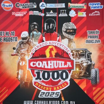Torreón, Coahuila de Zaragoza; a 22 de julio de 2025.- El Gobierno de Coahuila a través de la Secretaría de Turismo y Desarrollo de Pueblos Mágicos, en coordinación con el Ayuntamiento de Torreón y la Cámara Nacional de Comercio de Torreón invitan a la Canaco Adventure Coahuila 1000 Desert Rally 2025.
